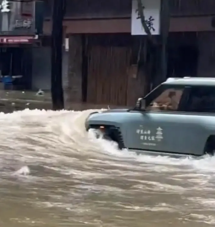 视频显示,上述车辆在行驶时激起水浪,有路人惊呼“海浪”,随后传来玻璃破碎、砸落水中的声音,有店铺卷闸门也被水冲至变形。有人上前拦截车主,指责其“在那摇来摇去三次了。”